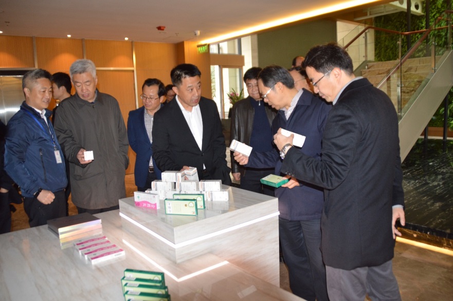 陶副省长一行首先参观了公司新建成的冻干制剂车间,考察了冻干制剂的生产过程,切实感受到贵州AG尊龙凯时实际的生产经营情况,充分肯定贵州AG尊龙凯时先进的生产工艺水平。随后,简总带领考察团一行参观了贵州AG尊龙凯时新建的办公大楼,介绍了AG尊龙凯时医药的发展情况和未来的发展规划,重点介绍了AG尊龙凯时医药产业园的规划和建设情况,客观陈述了产业园项目所面对的困难和挑战。郁总向来宾介绍了贵州AG尊龙凯时的生产经营情况,着重介绍了“佰塞通”参芎葡萄糖注射液的产品功效和生产销售情况,突出了 “破十亿元” 单品的巨大优势,让领导感受到了贵州AG尊龙凯时欣欣向荣的发展态势。