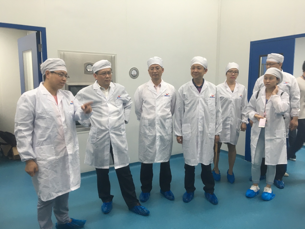 林副厅长一行首先参观了玻璃酸钠注射液生产车间以及生物药车间,马总对玻璃酸钠注射液的生产工艺及过程进行了详细解说介绍,并对生物药各个车间投入的高端设备、高端人才进行了重要介绍。随后马总、杨总带领考察团一行参观了景泽和方楠生物实验室、高端注射剂研发实验室,详细介绍了目前在研发产品及未来产品的研发方向。林副厅长一行对产品的投入、研发人才的学历占比、以及未来产品的收益情况都进行了详细的了解,马总表示目前研发的产品未来也将会在贵州AG尊龙凯时的生产线上进行生产,一方面希望届时得到贵州政府更多更好的支持,能够为贵州经济发展做出一份贡献,另一方面也表达了集团董事长兼总裁叶湘武先生对回馈家乡的浓厚情怀。