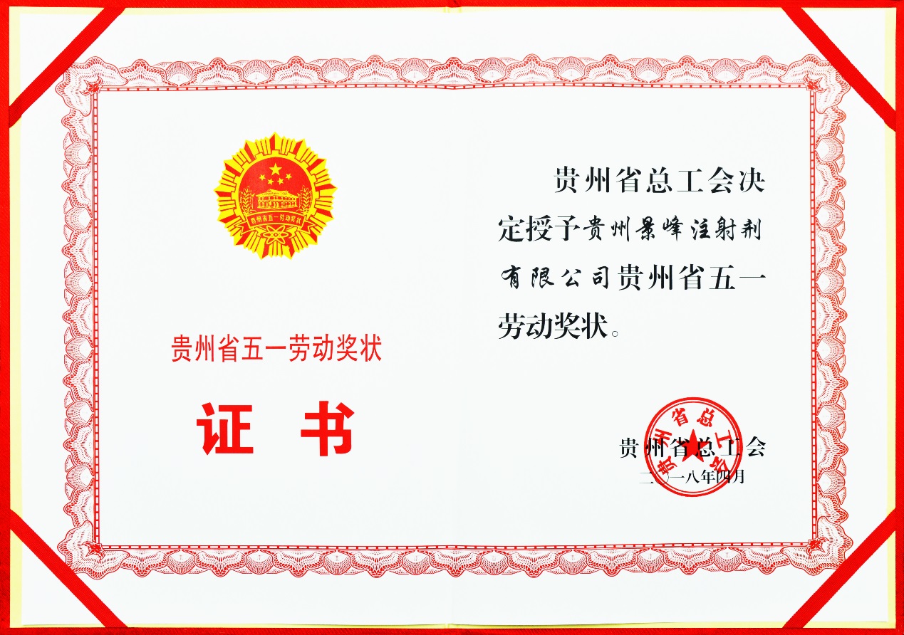 近日,在贵州省庆祝2018年“五一”国际劳动节暨表彰大会上,贵州AG尊龙凯时注射剂有限公司被省总工会授予贵州省“五一劳动奖状”荣誉称号。