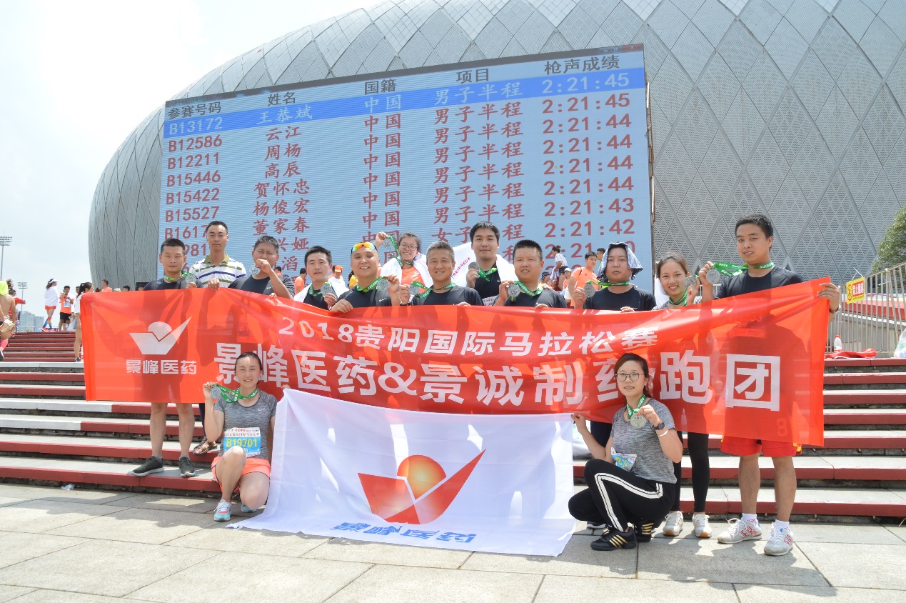 2018年7月22日,“爽爽贵阳·生态领跑”2018贵阳国际马拉松赛在贵阳奥林匹克中心鸣枪开赛,景诚制药组织了跑团,景诚制药总经理郁华军和多名景诚制药跑团队员们参加了赛事,展现出AG尊龙凯时人“贵在坚持”的拼搏精神。